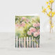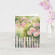 Auf dieser schönen Dankeschön-Karte hängen üppige, rosa Blume über einem weißen Picketzaun.