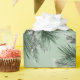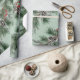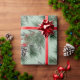 Ein elegantes und raffiniertes Urlaubspapier mit weißer Kiefer, vermischt mit silbernen Fichtenzweigen mit weißen Kieferntönen und roten Ilex-Beeren, die mit Garnelen auf der Diagonale vor einem schluchgrünen Hintergrund beladen sind.