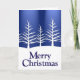 Weiße Kiefernbäume auf einem strahlend blauen Hintergrund mit fröhlichen Weihnachtsgrüßen. Einfache und elegante Weihnachts-Grußkarte.