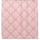 Elegant white vintage floral damasks seamless geometric pattern over a light pink customizable background color.