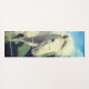 Dieser Yogamat hat ein weißes Pony darauf.