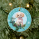 White Poodle Evergreen Blue Snowflake Border Keramik Ornament