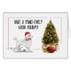 Schicken Sie eine humorvolle Weihnachtskarte mit diesem weißen Poodle, der einen roten Weihnachtshut und eine Krawatte aus Urlaubsbogen trägt. Bereit für ein glückliches neues Jahr, haben Sie eine gute Zeit mit diesem Poodle neben einem Weihnachtsbaum.