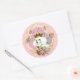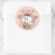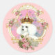 White Poodle Princess n Pink Roses Runder Aufkleber
