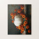 Ein Gemälde eines weißen Kürbis, umgeben von orangefarbenen Säulen.