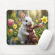 White Rabbit Licking a Chocolate Easter Bunny Mousepad