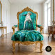 Bewundern Sie dieses exquisite decoupage Taschentuch mit einem weißen Rabe, der in einem regelmäßigen aquamarinen Brokat gezogen und in smaragdgrünen Juwelen gekrönt ist. Ideal für gotische Glasverkleidungen, Akzente bei Möbeln, fantasievoll inspiriert Dekoration und erhöhtes Halloween-Kunsthandwerk. Der türkisfarbene Hintergrund und das charakteristische Styling von Hautegraphique bringen edlen Flair auf jede kreative Oberfläche.