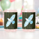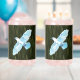 Eine weiße Silhouette eines raven (Corvus corax) im Flug überlagert auf einem grünen Fraktal Hintergrund ähnlich einem Nadelwald. Passen Sie Ihren eigenen Text auf der Rückseite an.