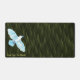 Eine weiße Silhouette eines raven (Corvus corax) im Flug überlagert auf einem grünen Fraktal Hintergrund ähnlich einem Nadelwald. Fügen Sie Ihren eigenen Text hinzu.