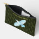 Eine weiße Silhouette eines raven (Corvus corax) im Flug überlagert auf einem grünen Fraktal Hintergrund ähnlich einem Nadelwald. Passen Sie Ihren eigenen Text an.