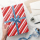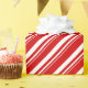 Ein klassisches Bonbons-Streifenpapier mit einem weißen, kantigen Streifen auf einem weihnachtroten Hintergrund.