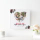 White Red Floral Heart Shaped Gift for Mother day Quadratische Wanduhr