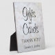 Mit diesem Schild können Ihre Gäste leicht wissen, wo sie ihre Geschenke und Karten verlassen haben. Es wurde als Teil unserer Hochzeitssuite White Reflections entworfen und bietet schwarzen Text auf einem Hintergrund, der die Blume und Herzen von Weiß widerspiegelt. Der Text ist vollständig anpassbar und liest: Geschenke und Karten Vielen Dank, mit dem Namen des Paares.