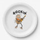 Rockin' in weißem Text mit einem glücklichen Rock beim Gitarrenspielen ist ein lustiges Musikdesign für Musiker, Schüler und Lehrer an Geburtstagen und Feiertagen.