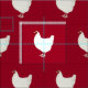 Fun farm inspired fabric, with a white rooster pattern, on a rich red background. Great idea for crafting or sewing.