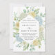 Ein modernes, sechsseitig gestaltetes Gestell mit Elfenbeinrosen und hellblauen Hydrangeas schafft ein wunderschönes botanisches Design. Die Blume sind in schlauem Grün und Blätter eingebettet. Diese Hochzeitseinladung ist Teil der Sammlung Rose und Hydrangea. Es enthält Vorlagen, um Ihnen zu helfen, eine einzigartige Hochzeitskunst-Suite zu schaffen und Ihre Hochzeitsfeier und Ihren Empfang zu personalisieren.
