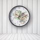Hinter dem wunderschönen Aquarellporträt eines Yorkshire Terrier auf dieser Uhr steht ein hübscher, weißer Rosenbuket. Das Bouquet- und Hundebild ist mit einem Overlay-Wirbel aus Imitaten Glitzer Confetti versehen. Dunkle Goldzahlen und rautenförmige Marker rund um den Rand machen die Uhr leicht lesbar. Ideal für alle, die ihr Herz an einen Yorkie verloren haben.