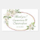 Vielen Dank an Ihre Freunde und Verwandten, die Ihre Hochzeit besucht haben, wenn Sie diese Flora und Fauna des Weißen Roses aussenden. Danke Stickers, die Rose in alten, weißen und beerigen Bouquets in Bordeaux haben, vor einem schlichten und eleganten, weißen Hintergrund mit goldenen und bordeauxfarbenen Ringen. Anpassen Sie Text, Schriftart und Farbe.