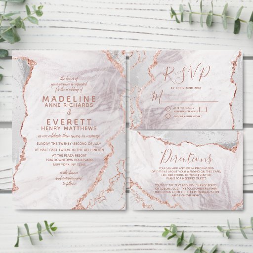 White Marble Agate with Rose Gold Foil WeddingDesignt von Lulu Jager