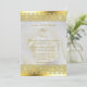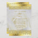 Dieses schöne klassische Hochzeitsdesign zeichnet sich durch eine abstrakte weiße Rose für den Hintergrund aus, mit goldener Spitze an der Spitze und am Boden. (Bitte beachten Sie, dass die Spitze nur goldfarben und nicht echtes Gold ist.) Ändern Sie den Text einfach mit Ihren eigenen Informationen, um diese Hochzeitseinladungen zu personalisieren.