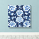 White Rose Muster & Royal Blue Background Art Leinwanddruck