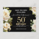 Weißrosen Aquarell 50. Geburtstagsfeier. Elegantes Blumendesign für jedes Jahr Geburtstagsfeier. Einfach mit Vorlage personalisieren. Schönes, Save the Date Geburtstagsgeschmacksmuster.