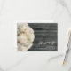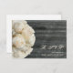Eine Hochzeitskarte mit einem Bild von weißen Rosen auf einem Hintergrund von Barnwood auf der Vorderseite. Passen Sie den Text auf Vorder- und Rückseite an.
