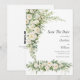 Lovely watercolor white roses, cream florals with greenery wedding save the date card invitation with editable lines on the front and a QR code for you to enter your wedding website on the back of the card. Classic and Traditional