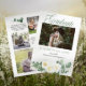 Schöne weiße Rosen und Eukalyptus Blumensträuße vier Foto Collage zweiseitig "Graduate" Abschluss Ankündigung. Fügen Sie einfach die Fotos und Details Ihres Abschlusses hinzu, um dieses Design zu vervollständigen. Composite Design von Holiday Hearts Designs (Rechte vorbehalten).