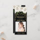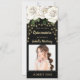 Elegante Quinceañera 15. Geburtstagsfeier Einladung für Mädchen mit wunderschönen, weißen Rosen/Blume mit goldenem Glitzer und funkelnd Sternenklingelicht auf schwarzem Hintergrund. Das Ticket hat den Text "Einlass". Personalisieren Sie Ihre Party-Informationen und Ihr Foto.