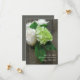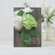 Eine Hochzeit speichern Sie das Datum mit einem Foto einer Vase, verpackt in Burlgarn und gefüllt mit weißen Rosen und Hydrangeas auf einem barnwood Hintergrund. Personalisieren Sie den Text.