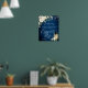 White Roses Lantern Blue Wood Engagement Party Poster