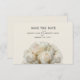 Eine Hochzeit speichert die Dattelkarte mit einem Bild von weißen Rosen unten. Personalisieren Sie den Text mit Details zu Ihrem Anlass.
