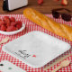 Weiß schimmerndes Satin-Damast-Muster mit rotem Herz für 25. Hochzeitstag. Text ist bearbeitbar.