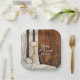 Passen Sie den charmanten Western "White Satin and Horse Bit Country" mit den persönlichen Namen der Braut und des Bräutigams an und wählen Sie das Datum für Ihren lässigen und dennoch eleganten Brautparty zum Thema Ranch oder den Empfang für Party-Ehen. Diese rustikalen, ganz nach dem Motto "Pferde" gestalteten Einweg-Teller sind mit einem malerischen Foto eines Pferdeknechtes, Lederreine mit weißem Satin und Perlenhalskette mit verwittertem braunem Holzfußboden versehen.