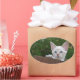 White Savannah Cat Oval Sticker. Hintergrund für Sie bereit, um Ihre eigenen Bilder und Text hinzuzufügen.