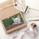White Savannah Cat Rectangle Sticker. Solid farbiger Hintergrund für Sie bereit, Ihre eigenen Bilder und Text hinzuzufügen.
