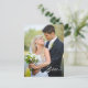 WEISS SKRIPT WEDDING DANKE IHNEN FOTO POSTCARD. Dieses einfache Dankeschön-Kartendesign mit dem eleganten weißen Script-Schriftart "Danke" und Ihren Hochzeitsfeiern auf der Vorderseite und auf der Rückseite der Postkarte ist eine stilvolle Art, Ihnen zu danken Hochzeitsgäste. Design von Elke Clarke© für Monogram Gallery. Verwenden Sie die Vorlage Eingabeaufforderungen oder "anpassen Sie es" und haben mehr Freiheit, um zusätzliche Text, wie Ihre Monogramm, Anfangs-, Hochzeitstag oder Extra-Text oder Grafiken aus Ihrem Hochzeitstil hinzuzufügen. Auch in den Designschichten ist eine undurchsichtige Ebene enthalten, die Sie über Ihr Foto auf der Kartenrückseite benutzen können, um Ihr Foto noch mehr im Hintergrund zu haben. Brauchst du Hilfe? Bitte kontaktieren Sie luxuryweddinginvitations@gmail.com.