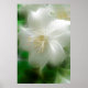 Poster White Shiny Jasmine, Komposition inspiriert von einer hellen, weißen Jasminduft Blume. Sein gelbes Stamen ist kühn sichtbar, ebenso wie seine grünen Blätter. Dieses hübsche weiße Jasmin ist voll geblümt und sieht gleichzeitig einfach und luxuriös aus. Das Quellbild wird mit einem speziellen Manipulationseffekt bearbeitet, der eine Art Glitzern erzeugt und sie auf den Blättern der Blume zeigt, die ihnen den Glanz zurückgeben, den sie unter dem Sonnenlicht haben.