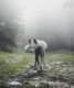 Weiße sibirische Husky Hoodie. Weißer sibirischer Husky im Wald. Foto von Marek Szturc.