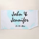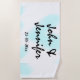 white simple minimal text style wedding blue heart strandtuch