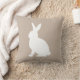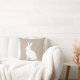 White Sitting Bunny Silhouette On Beige Easter Kissen