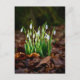 Auf dieser Postkarte befindet sich ein Foto weißer Schneetropfen im Wald.