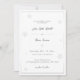 Ein schlichtes, weißes, dekoratives Schneeflockenmuster schmückt dieses elegante, moderne, schlichte und romantische Winterschlachtwerk mit einer Touch Weißgold im traditionellen, zarten Rahmen und moderner Schriftzeichen. Diese einfache Hochzeitseinladung wäre eine schöne Wahl für eine Winterhochzeit für Paare, die Schwarz, Weiß und Weiß, Kunstzeichnungen und moderne minimalistische Designs mit einer Touch von modernisierten formalen und traditionellen Lieben.