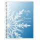 Passen Sie die festliche White Snowflake auf Blue Winter Wedding Spiral Notebook mit den persönlichen Namen der Braut und Bräutigam und ihrem Datum der Dezember-, Januar- oder Februar-Heirat, um eine von einem freundlichen Planer, Ratgeber Buch oder Gästebuch zu schaffen. Dieses elegante, individuell gestaltete Winterwunderland-Theme-Nuptial-Notizbuch zeigt weiße, faszinierende Schneeflocken mit einem gradientenblauen Hintergrund.