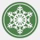 Simple, classic, trendy modern white snowflake on a green colored Christmas Holiday season label.