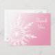 Customize the festive White Snowflake on Pink Winter Thank You Postcard with your own personal message of apprevention and gratiité Suitable to use for Received After hat December, January und Februar Birthday, bridal shower, wedding or holiday klassiert. This elegant custom wintery thank you note postcard feature an intricate white snowflake design Wir haben einen Pink background Gradienten.