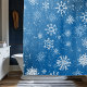 Weiße Schneeflocken und Schnee in einer saphirblauen Kulisse