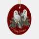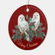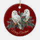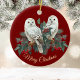 White Snowy Owls in Berries über Burgund Weihnacht Keramik Ornament