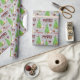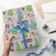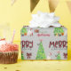 Das wiederholte Muster auf diesem niedlichen Weihnachtsverpackungspapier ist ein Bild eines White American Staffordshire Terrier Hundes mit einer rot-weißen Weihnachtsmannmütze. Der Hund sitzt neben einem geschmückten Weihnachtsbaum unter hellen Geschenkpackungen. Ein Stiervogel landet auf dem Baum dahinter. Stilisierter, roter und schwarzer Büffel karierter Text sagt MERRY CHRISTMAS", und Ihre eigene Unterschrift ist in zwei Bereichen für Sie individuell.
